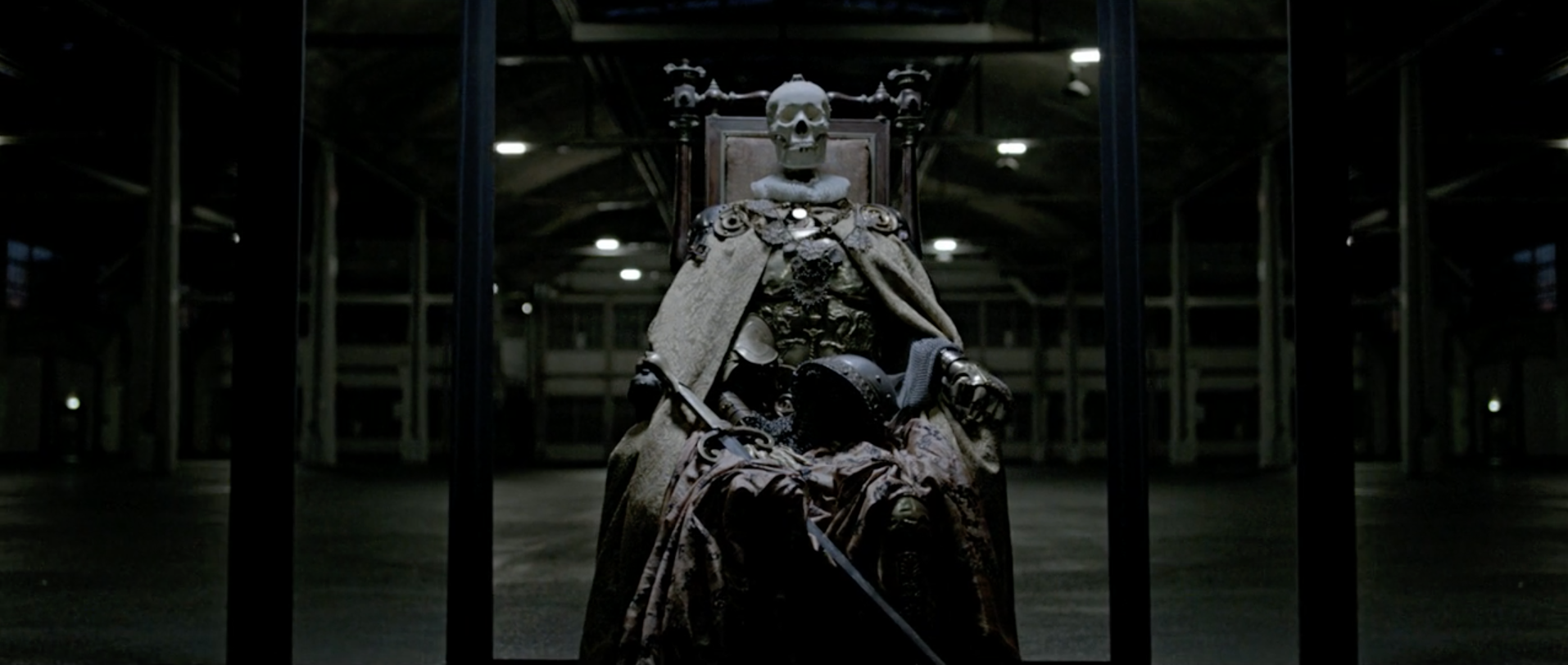 We end with the skeleton of the king. Possibly the body of that smiley, blonde-haired, blue-eyed boy from this video's beginning. The boy that shaped society by pulling his desires out of a box, is now inside of a box.