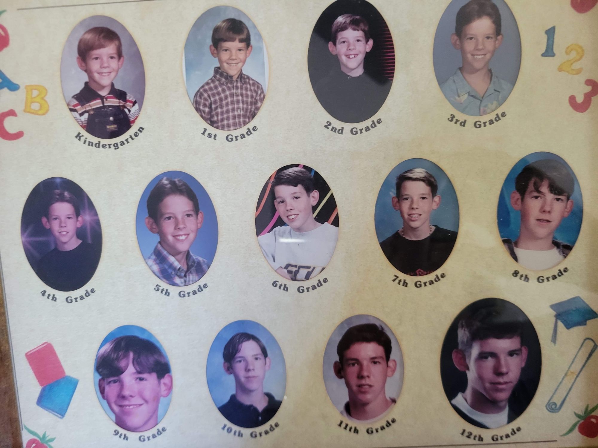 I had a keen feeling as a kid that the majority of being cool had to do with hairstyle. Since I felt mine to be whack, my cool advancement seemed blocked. Here's some examples of each year of public school. The hair style changes but doesn't feel quiet right, with the not-feeling-right pinnacle1 achievement in grade 10.